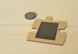 Rückseitig mit Magnetfolie ausgerüstet, lassen sich die Puzzleteile auch an stehenden Wänden (Whiteboard oder Stahlblechtafel ) zusammenbauen und präsentieren. Jedes teil bekommt den passenden Magneten.