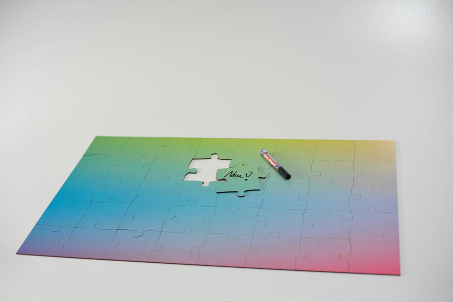 Wir legen dem Puzzle unser Infoblatt zum Bemalen und Beschreiben von Puzzleteilen aus HDF bei.