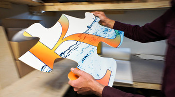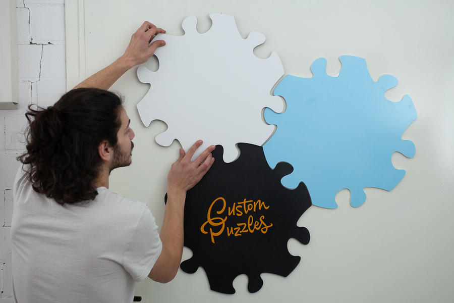 Mit unserem modularen Schnittmuster können sie Ihr Logo in Groß mit kleineren Puzzleteilen kombinieren. Diese Puzzles eignen sich für Teamevents und Firmenfeiern. Möglich sind auch Kombinationen von gedruckten Logos und Puzzleteilen zum Beschreiben.