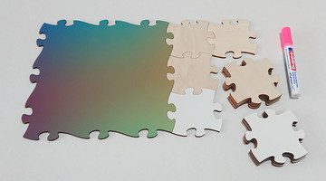 Wir stellen für Sie auch unbedruckte Puzzleteile her. Dazu verwenden wir Hartfaserplatte (weiss) und Birkensperrholz mit natürlicher Holzoberfläche. Eine Auswahl unserer unbedruckten Teile können Sie auch im Webshop bestellen, für Spezialanfertigungen kontaktieren Sie uns bitte per Email.