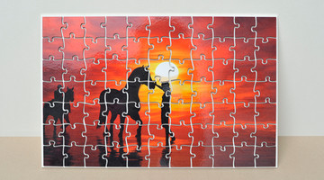 Wir stellen nach Auftrag großformatige Fotopuzzles, mit den Motiven unserer Kunden her. Ausserdem bieten wir auch Kombinationen aus bedruckten Puzzleteilen mit beschreibbaren Blankopuzzleteilen an. Durch unseren, sehr flexiblen Produktionsprozess können wir fast jede gewünschte Größe und Teilform herstellen. Auf dieser Seite finden Sie einige Beispielangebote.